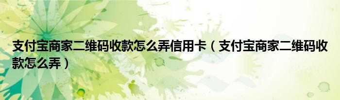 支付宝商家二维码收款怎么弄信用卡(支付宝商家二维码收款怎么弄)