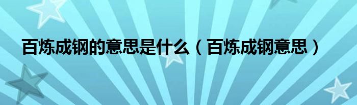 1、通钢也可以写成【100%炼成钢】。钢中之钢,是指铁经过反复锤炼变成了坚韧的钢,比喻经过反复锤炼成为有用人才的人。出自郭小川《保卫我们的党》:“点燃奋斗之火,人经过反复锤炼就会炼成钢。”这是一个褒义词,一般可以做谓语和定语,比喻不怕失败,意志坚强;