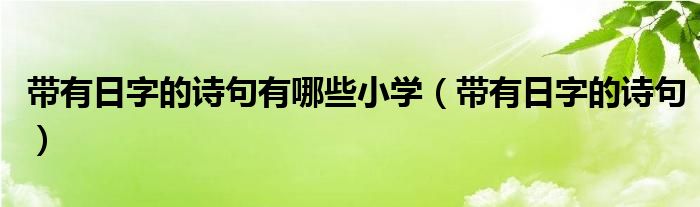 关于带有日字的诗句有哪些小学,带有日字的诗句这个很多人还不知道,今天菲菲来为大家解答以上的问题,现在让我们一起来看看吧!