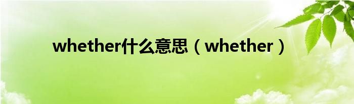 关于whether什么意思,whether这个很多人还不知道,今天菲菲来为大家解答以上的问题,现在让我们一起来看看吧!