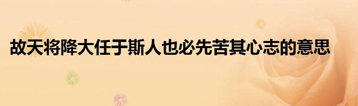 关于故天将降大任于斯人也必先苦其心志的意思这个很多人还不知道,今天菲菲来为大家解答以上的问题,现在让我们一起来看看吧!