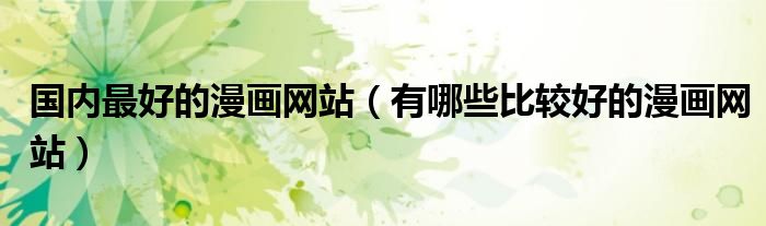 关于国内最好的漫画网站,有哪些比较好的漫画网站这个很多人还不知道,今天菲菲来为大家解答以上的问题,现在让我们一起来看看吧!