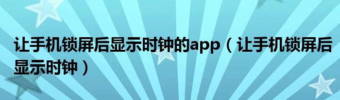 大家好,小晋来为大家解答以下问题,关于让手机锁屏后显示时钟的app,让手机锁屏后显示时钟很多人还不知道,今天让我们一起来看看吧!