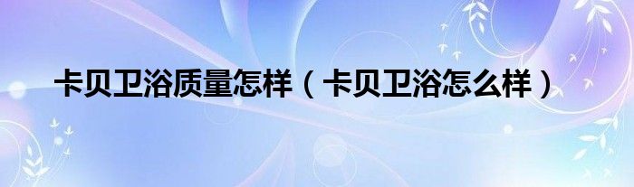 关于卡贝卫浴质量怎样,卡贝卫浴怎么样这个很多人还不知道,今天菲菲来为大家解答以上的问题,现在让我们一起来看看吧!