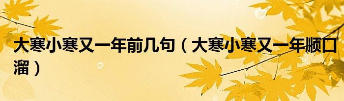 关于大寒小寒又一年前几句,大寒小寒又一年顺口溜这个很多人还不知道,今天菲菲来为大家解答以上的问题,现在让我们一起来看看吧!