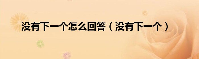 大家好,小晋来为大家解答以下问题,关于没有下一个怎么回答,没有下一个很多人还不知道,今天让我们一起来看看吧!