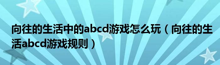 大家好,小晋来为大家解答以下问题,关于向往的生活中的abcd游戏怎么玩,向往的生活abcd游戏规则很多人还不知道,今天让我们一起来看看吧!