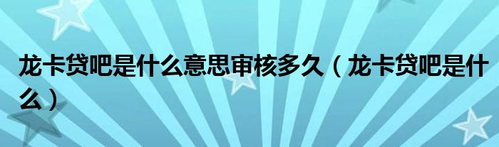 关于龙卡贷吧是什么意思审核多久,龙卡贷吧是什么这个很多人还不知道,今天菲菲来为大家解答以上的问题,现在让我们一起来看看吧!