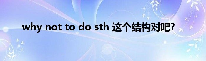 关于why not to do sth 这个结构对吧?这个很多人还不知道,今天菲菲来为大家解答以上的问题,现在让我们一起来看看吧!