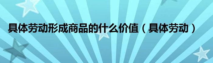 关于具体劳动形成商品的什么价值,具体劳动这个很多人还不知道,今天菲菲来为大家解答以上的问题,现在让我们一起来看看吧!