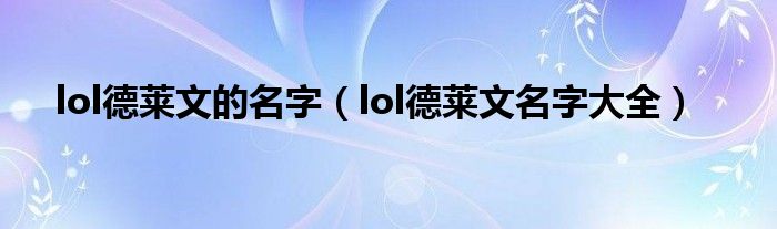 关于lol德莱文的名字,lol德莱文名字大全这个很多人还不知道,今天菲菲来为大家解答以上的问题,现在让我们一起来看看吧!