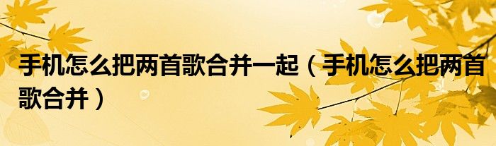 大家好,小晋来为大家解答以下问题,关于手机怎么把两首歌合并一起,手机怎么把两首歌合并很多人还不知道,今天让我们一起来看看吧!