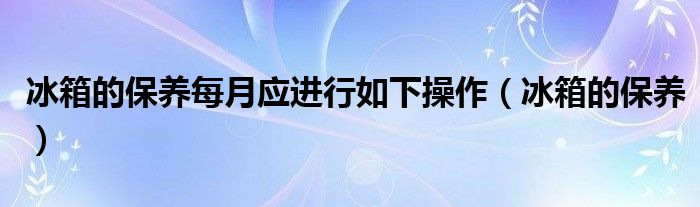 大家好,来宝来为大家解答以下问题,冰箱的保养每月应进行如下操作,冰箱的保养很多人还不知道,今天让我们一起来看看吧!