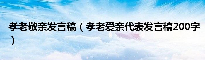 关于孝老敬亲发言稿,孝老爱亲代表发言稿200字这个很多人还不知道,今天菲菲来为大家解答以上的问题,现在让我们一起来看看吧!