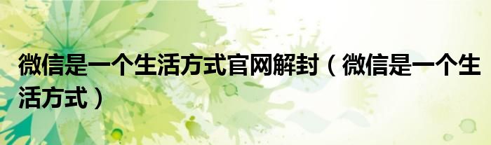 关于微信是一个生活方式官网解封,微信是一个生活方式这个很多人还不知道,今天菲菲来为大家解答以上的问题,现在让我们一起来看看吧!