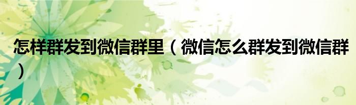 怎样群发到微信群里(微信怎么群发到微信群)