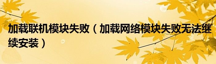 加载联机模块失败(加载网络模块失败无法继续安装)