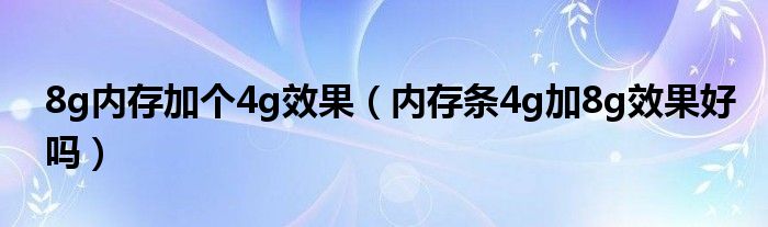 大家好,小晋来为大家解答以下问题,关于8g内存加个4g效果,内存条4g加8g效果好吗很多人还不知道,今天让我们一起来看看吧!