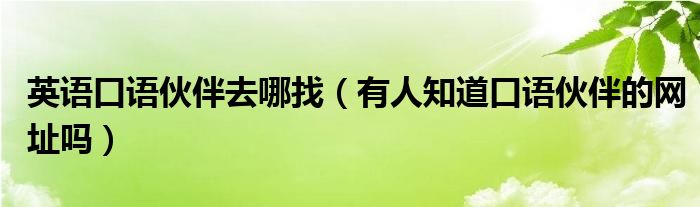 英语口语伙伴去哪找(有人知道口语伙伴的网址吗)