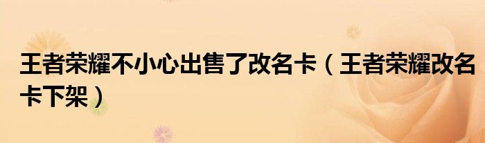 大家好,来宝来为大家解答以下问题,王者荣耀不小心出售了改名卡,王者荣耀改名卡下架很多人还不知道,今天让我们一起来看看吧!