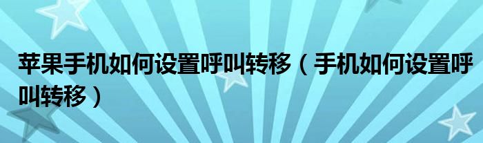 大家好,小晋来为大家解答以下问题,关于苹果手机如何设置呼叫转移,手机如何设置呼叫转移很多人还不知道,今天让我们一起来看看吧!