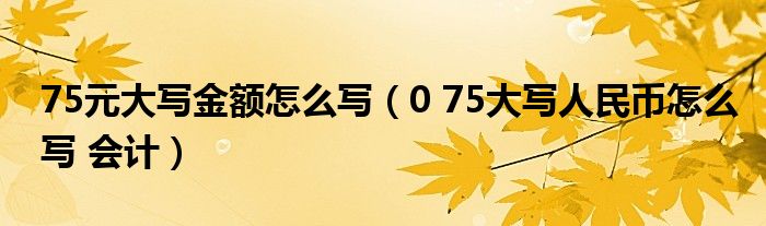 关于75元大写金额怎么写,0 75大写人民币怎么写 会计这个很多人还不知道,今天菲菲来为大家解答以上的问题,现在让我们一起来看看吧!