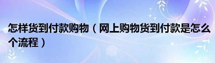 关于怎样货到付款购物,网上购物货到付款是怎么个流程这个很多人还不知道,今天菲菲来为大家解答以上的问题,现在让我们一起来看看吧!