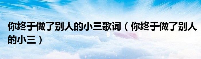 关于你终于做了别人的小三歌词,你终于做了别人的小三这个很多人还不知道,今天菲菲来为大家解答以上的问题,现在让我们一起来看看吧!