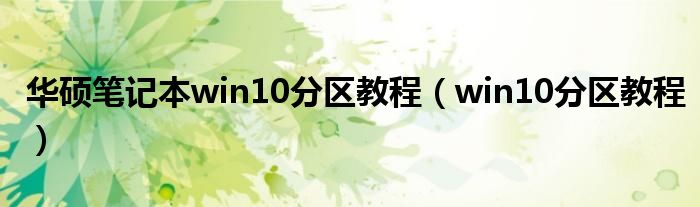 大家好,小晋来为大家解答以下问题,关于华硕笔记本win10分区教程,win10分区教程很多人还不知道,今天让我们一起来看看吧!