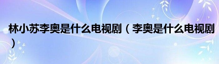 大家好,小晋来为大家解答以下问题,关于林小苏李奥是什么电视剧,李奥是什么电视剧很多人还不知道,今天让我们一起来看看吧!