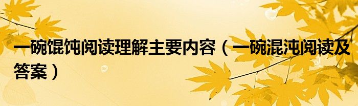 关于一碗馄饨阅读理解主要内容,一碗混沌阅读及答案这个很多人还不知道,今天菲菲来为大家解答以上的问题,现在让我们一起来看看吧!