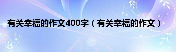 关于有关幸福的作文400字,有关幸福的作文这个很多人还不知道,今天菲菲来为大家解答以上的问题,现在让我们一起来看看吧!