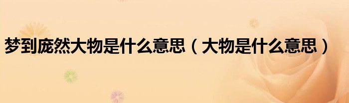 关于梦到庞然大物是什么意思,大物是什么意思这个很多人还不知道,今天菲菲来为大家解答以上的问题,现在让我们一起来看看吧!