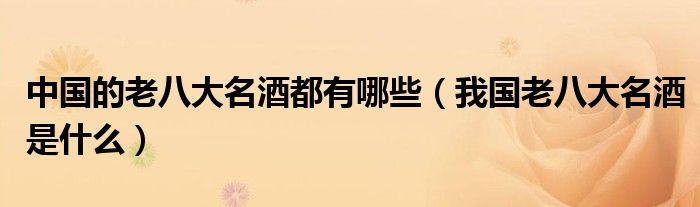 关于中国的老八大名酒都有哪些,我国老八大名酒是什么这个很多人还不知道,今天菲菲来为大家解答以上的问题,现在让我们一起来看看吧!