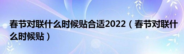 大家好,小晋来为大家解答以下问题,关于春节对联什么时候贴合适2022,春节对联什么时候贴很多人还不知道,今天让我们一起来看看吧!