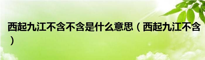 关于西起九江不含不含是什么意思,西起九江不含这个很多人还不知道,今天菲菲来为大家解答以上的问题,现在让我们一起来看看吧!