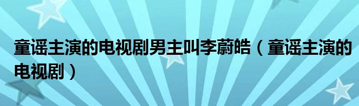 童谣主演的电视剧男主叫李蔚皓(童谣主演的电视剧)