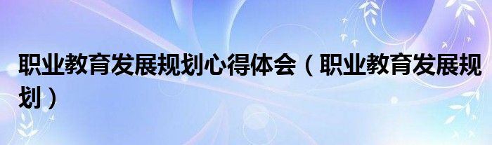 关于职业教育发展规划心得体会,职业教育发展规划这个很多人还不知道,今天菲菲来为大家解答以上的问题,现在让我们一起来看看吧!