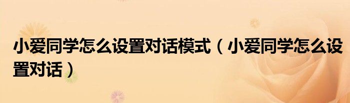 大家好,小晋来为大家解答以下问题,关于小爱同学怎么设置对话模式,小爱同学怎么设置对话很多人还不知道,今天让我们一起来看看吧!