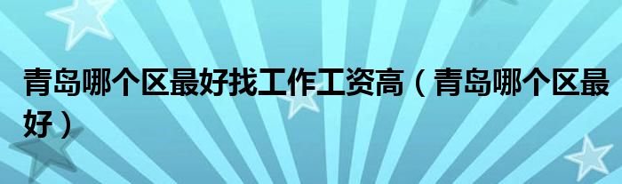 关于青岛哪个区最好找工作工资高,青岛哪个区最好这个很多人还不知道,今天菲菲来为大家解答以上的问题,现在让我们一起来看看吧!