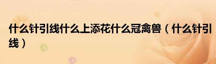大家好,小晋来为大家解答以下问题,关于什么针引线什么上添花什么冠禽兽,什么针引线很多人还不知道,今天让我们一起来看看吧!