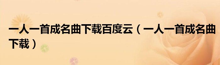 关于一人一首成名曲下载百度云,一人一首成名曲下载这个很多人还不知道,今天菲菲来为大家解答以上的问题,现在让我们一起来看看吧!