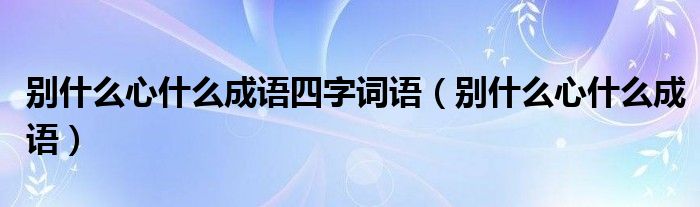 大家好,小晋来为大家解答以下问题,关于别什么心什么成语四字词语,别什么心什么成语很多人还不知道,今天让我们一起来看看吧!