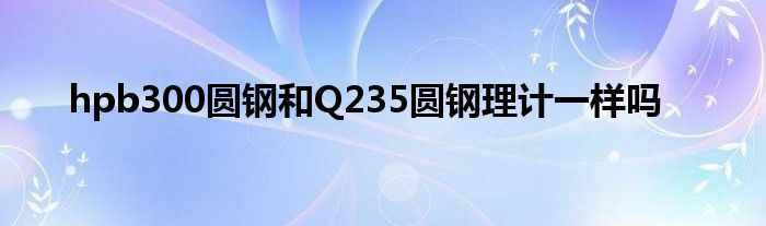 关于hpb300圆钢和Q235圆钢理计一样吗这个很多人还不知道,今天菲菲来为大家解答以上的问题,现在让我们一起来看看吧!
